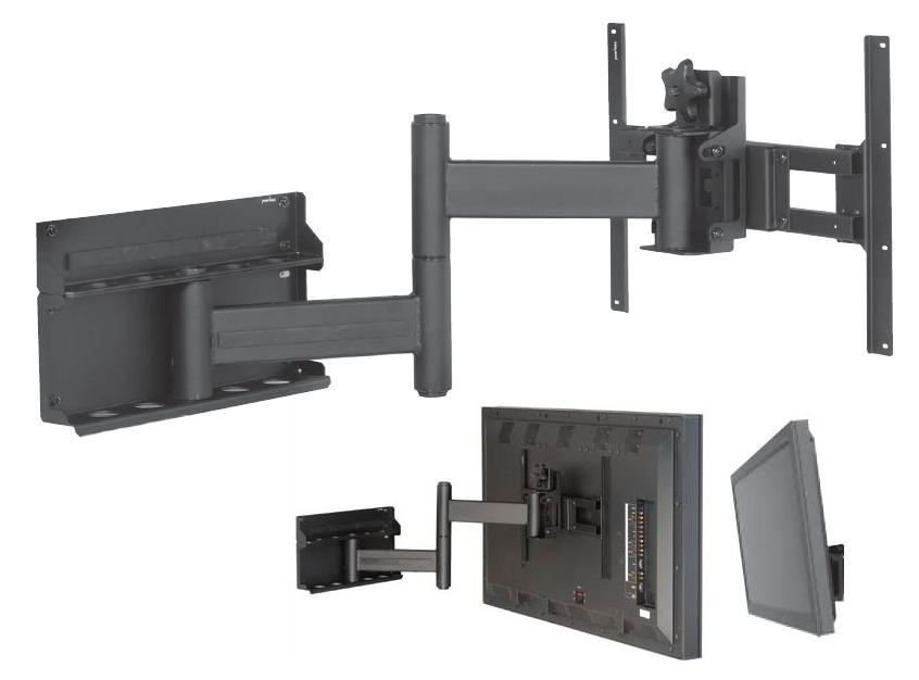 - Arm extends up to 18.25" from the wall or folds flat to save space • Four pivot points for
