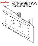 An external wall plate that is designed for use on 25 gauge or heavier metal studs to safely span the load between three studs. Compatible with PLA-1 and PLA-2 models. Includes togglers for attachment to studs and screws for attachment of wall mount to plate. Offered in black or white for studs with 16", 20" or 24" centers. Models come with pre-scored electrical knockouts. MAX LOAD: 175 lbs (79.3 kg) WSP450 to centers: 16" WSP460 to centers: 20" WSP470 to centers: 24"