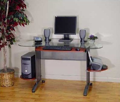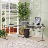 Sturdy steel base and attractive tempered glass desktop insures the Portofina LS Workcenter is as tough as it is attractive. This compact corner work center will fit in any home or office enivronment, while the slide-out keyboard and desktop allow for plenty of work space. Features: