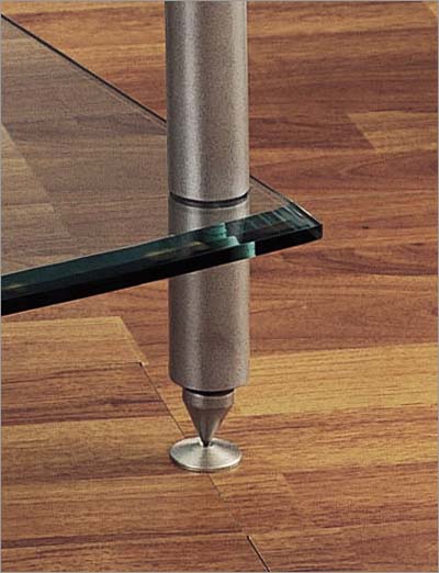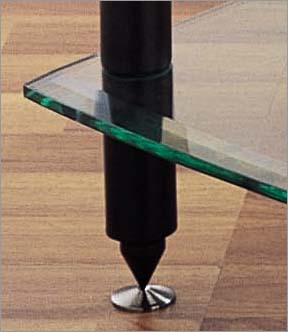 AGR Series: Extra thick clear glass at .4"(10mm), 4 silver or black poles with pointed foot spikes or casters