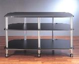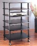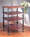 AR Series: Black or cherry MDF (medium density fiberboard) shelves, black or silver poles with casters