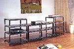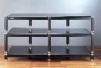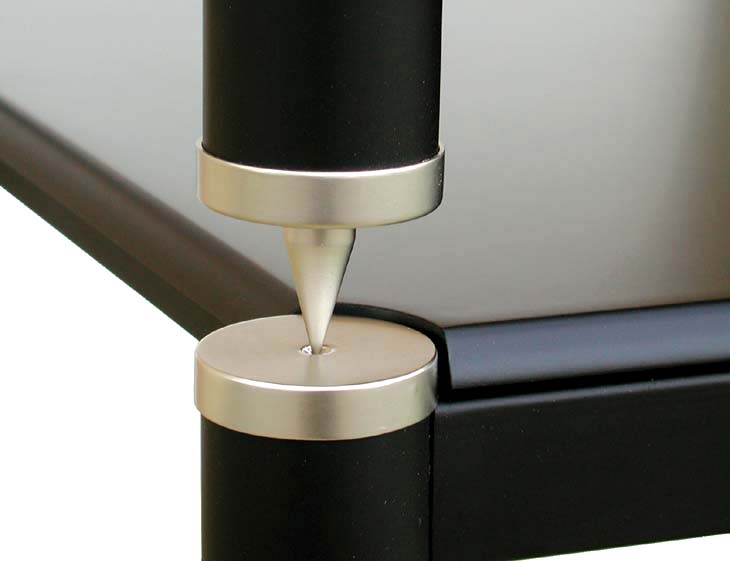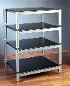 BL404SSB 4 Shelf Audio Rack with Silver Caps/Spikes,Silver Poles and Black Shelves