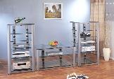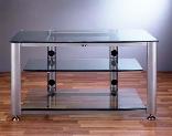 HGR403S 3 Shelf TV/Audio Rack with Silver Pole and Clear Glass