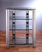 HGR404S 4 Shelf Audio Rack with Silver Pole and Clear Glass